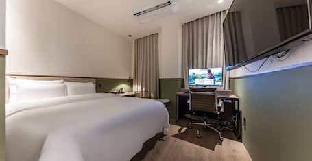 객실타입은 디럭스침대/디럭스온돌/뽀로로룸(정원5인/방2,욕실) 그리고 로얄침대(정원7인/방3,욕실2,거실)로 구성되어 있습니다 리조트답게 객실내 식기류(후라이팬,전골그릇) 조리기구를 구비하고 있습니다 * 휴대용 취사도구(버너/가스/그릴/폭죽등)는 객실반입제한 GS25편의점,밀키트